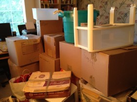 We’re unpacking about three or four boxes a day. We’ve been concentrating on kitchen stuff and clothing.