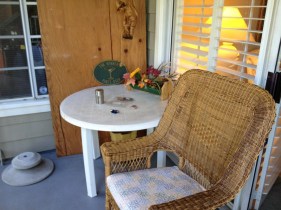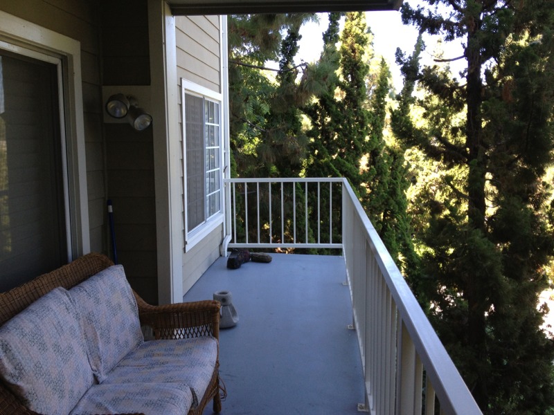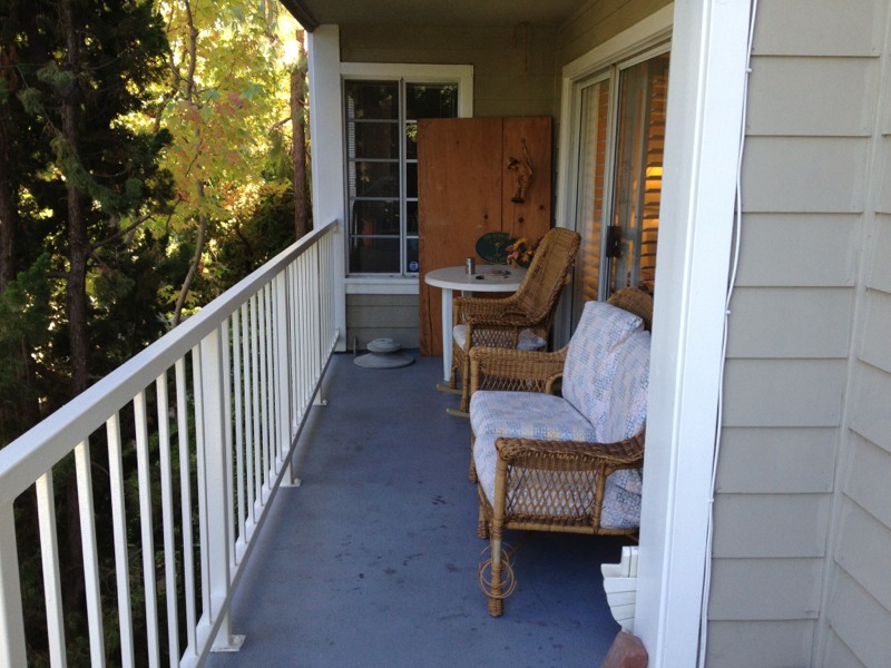 When we moved here from Billerica, the only furniture we brought with us was two pieces of pseudo patio furniture, a love seat and a rocking chair. The balcony is mostly shaded by the balcony on the unit above us.