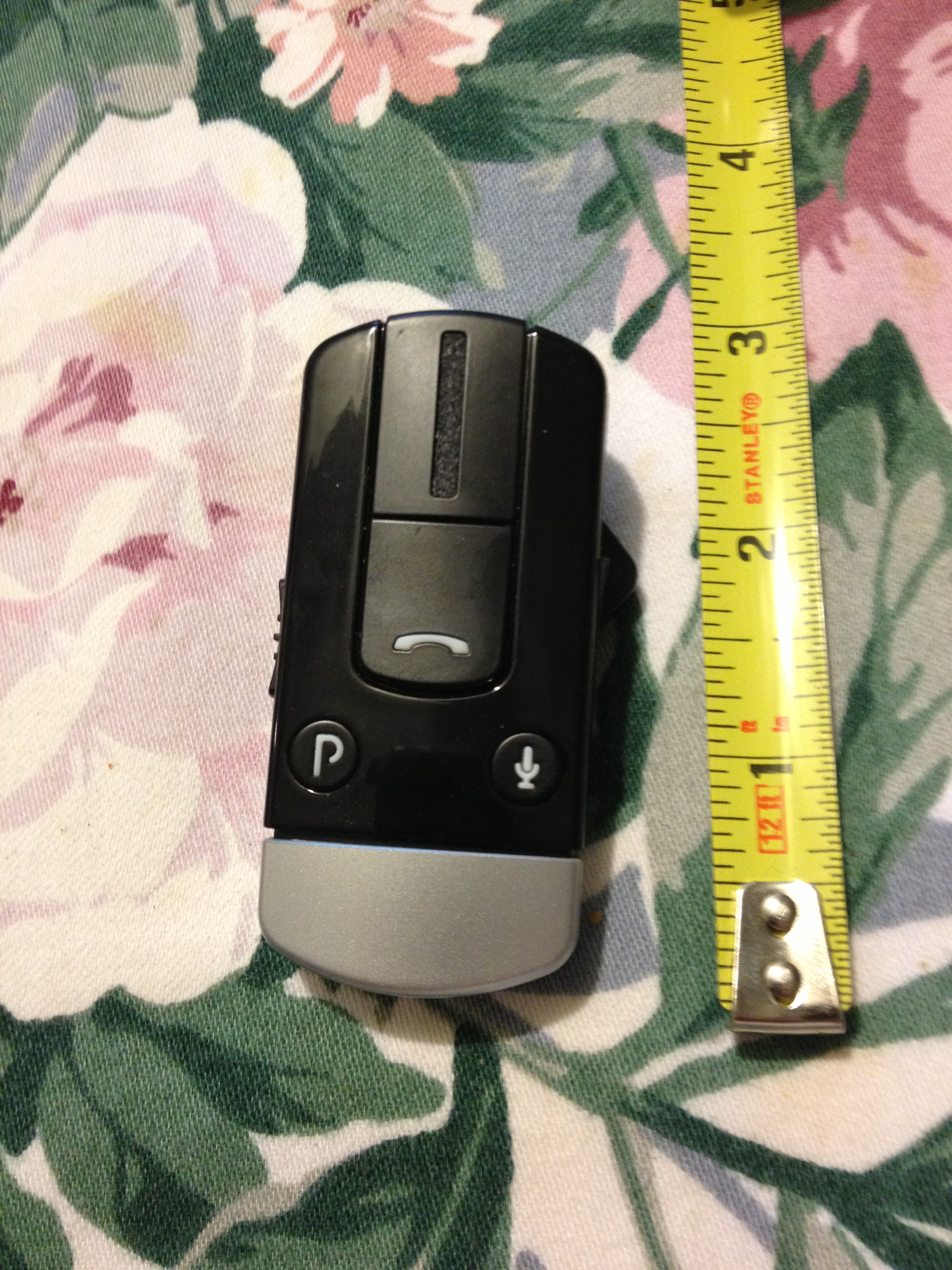 Here’s a picture of the phone clip. Phone clip has buttons for volume, program, and phone answer. It has a microphone to be used when making phone calls.