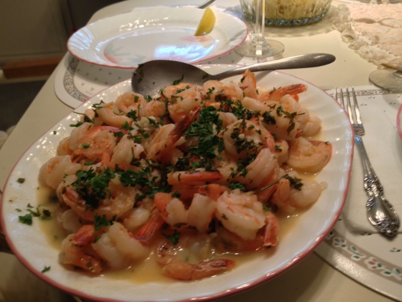 The main course was shrimp scampi over fettuccine. Here’s the recipe.