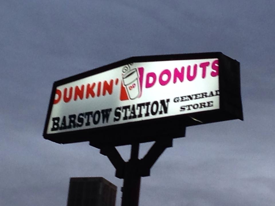And one more thing, we have discovered there is now a Dunkin Donuts in Barstow (for our East Coast friends, Barstow is out in the middle of the Mojave desert, about 125 miles east of LA. For a while, the only Dunkie’s was at Camp Pendleton on the way down to San Diego. Slowly but surely, Dunking Donuts will come to the west coast. There is help.