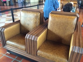 The main waiting area has these beautifully restored cushioned seats. At one time they were made of leather. The leather has since been replaced by vinyl. They are very comfortable. You don’t see seats like this at a modern airport.