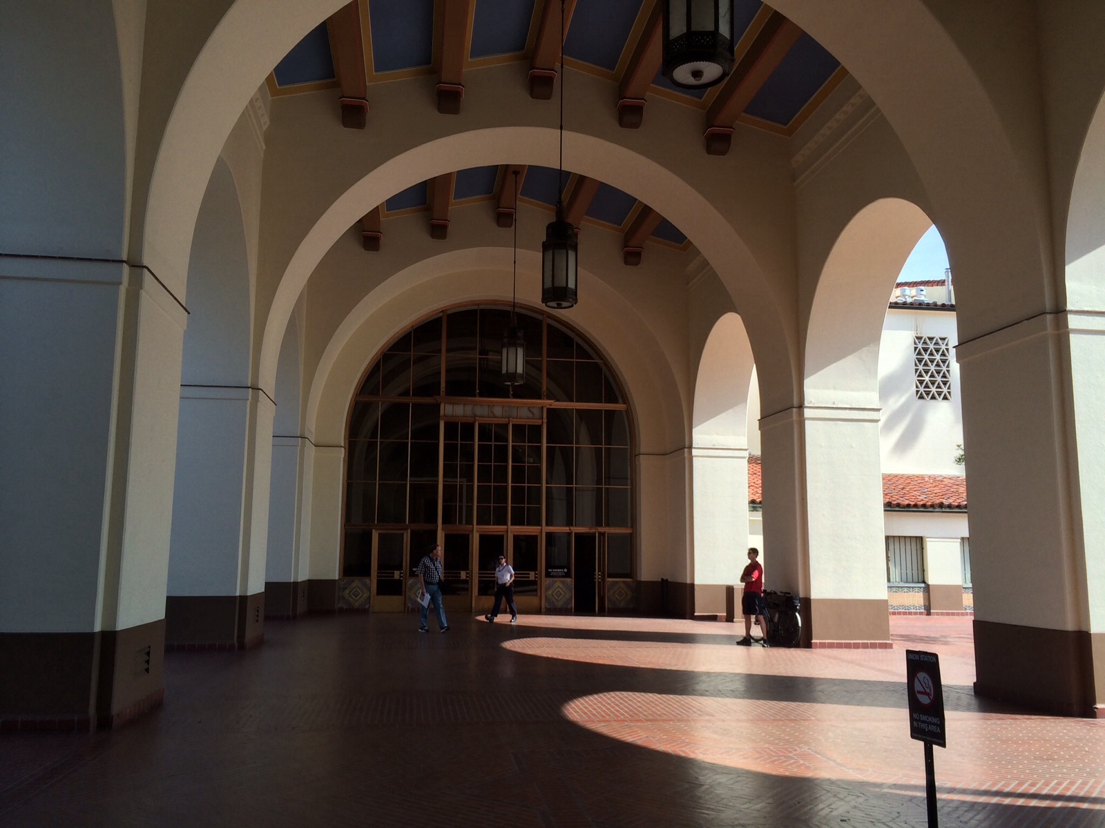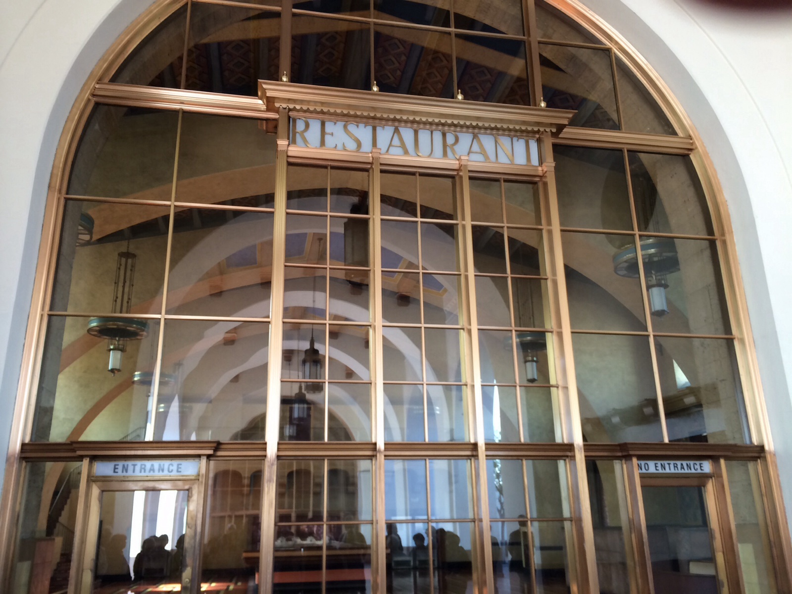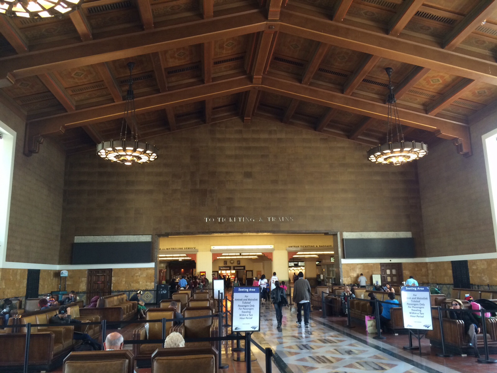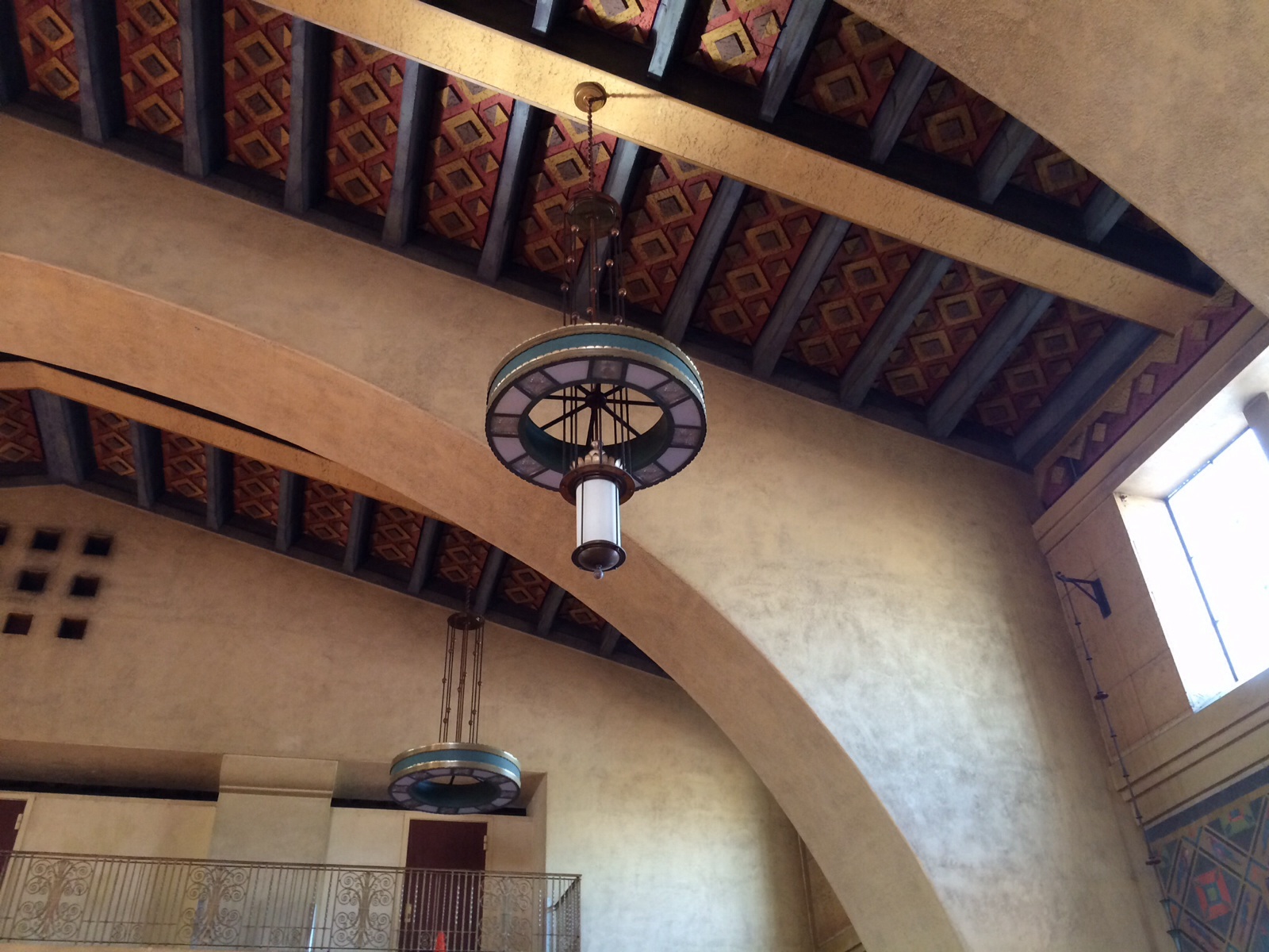 The architecture is a combination of Art-Deco, Moderne, and Mission Revival. Our docent described it as “Pueblo Deco” architecture. When you arrive at the station you walk through a long tunnel with ceilings about 9.5 ft high. Then you reach the main terminal you are treated with site of arched ceilings with beautiful chandeliers.