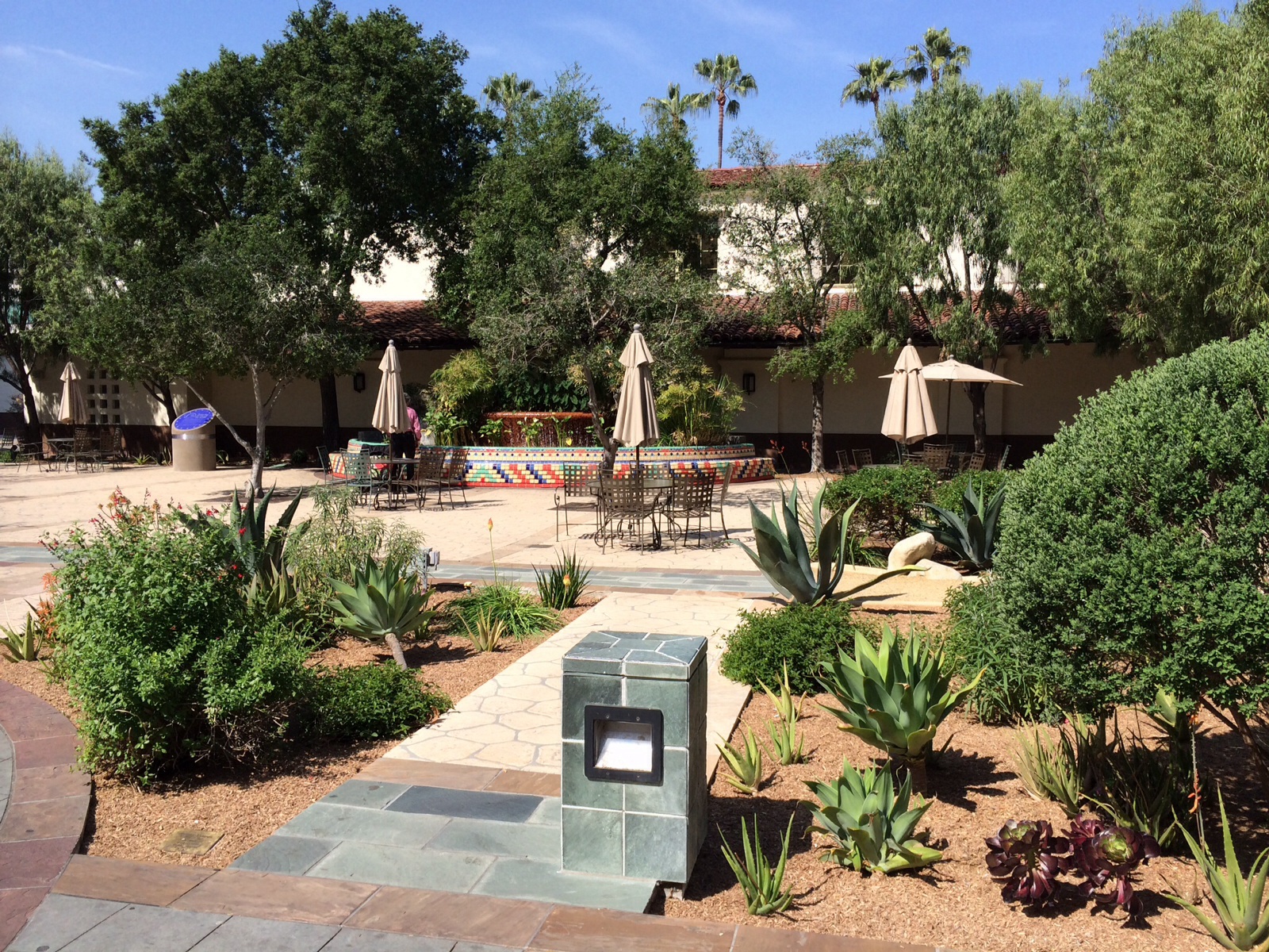 The station has two gardens on either side of the station. I was first struck by the awesome view of the towering palm trees. There are many roses, greenery and fountains. Here are a few more pictures.