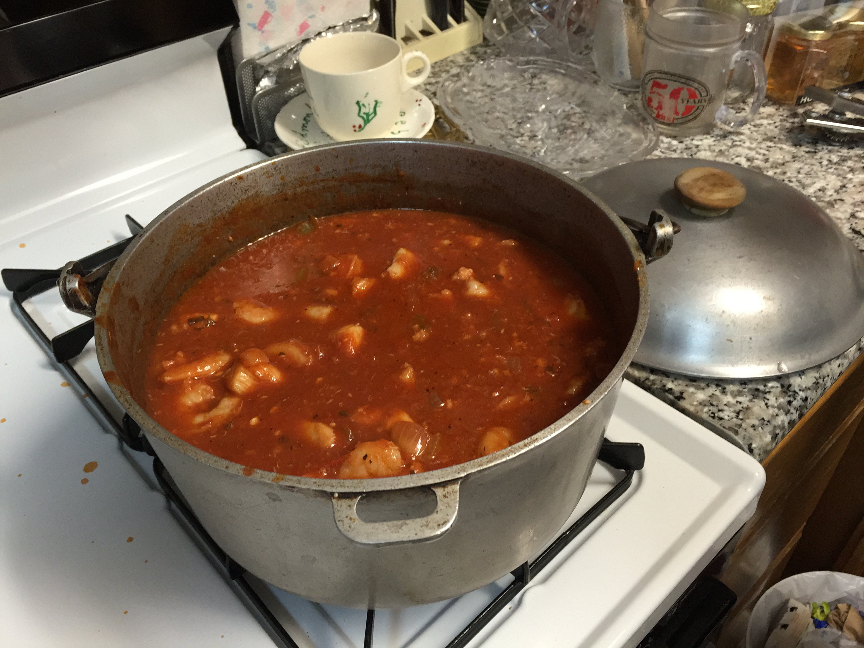 Cioppino is an Italian fish stew that an excellent choice for a cold winter’s day. (Even in LA). Temperature today in San Pedro is in low 50’s with light rain. Not exactly weather back in Mass, but chilly nevertheless. The attached recipe belonged to Paula’s father Harold. Harold died in 2009. Whenever we have it, we think of him. It was one of his favorite dishes.