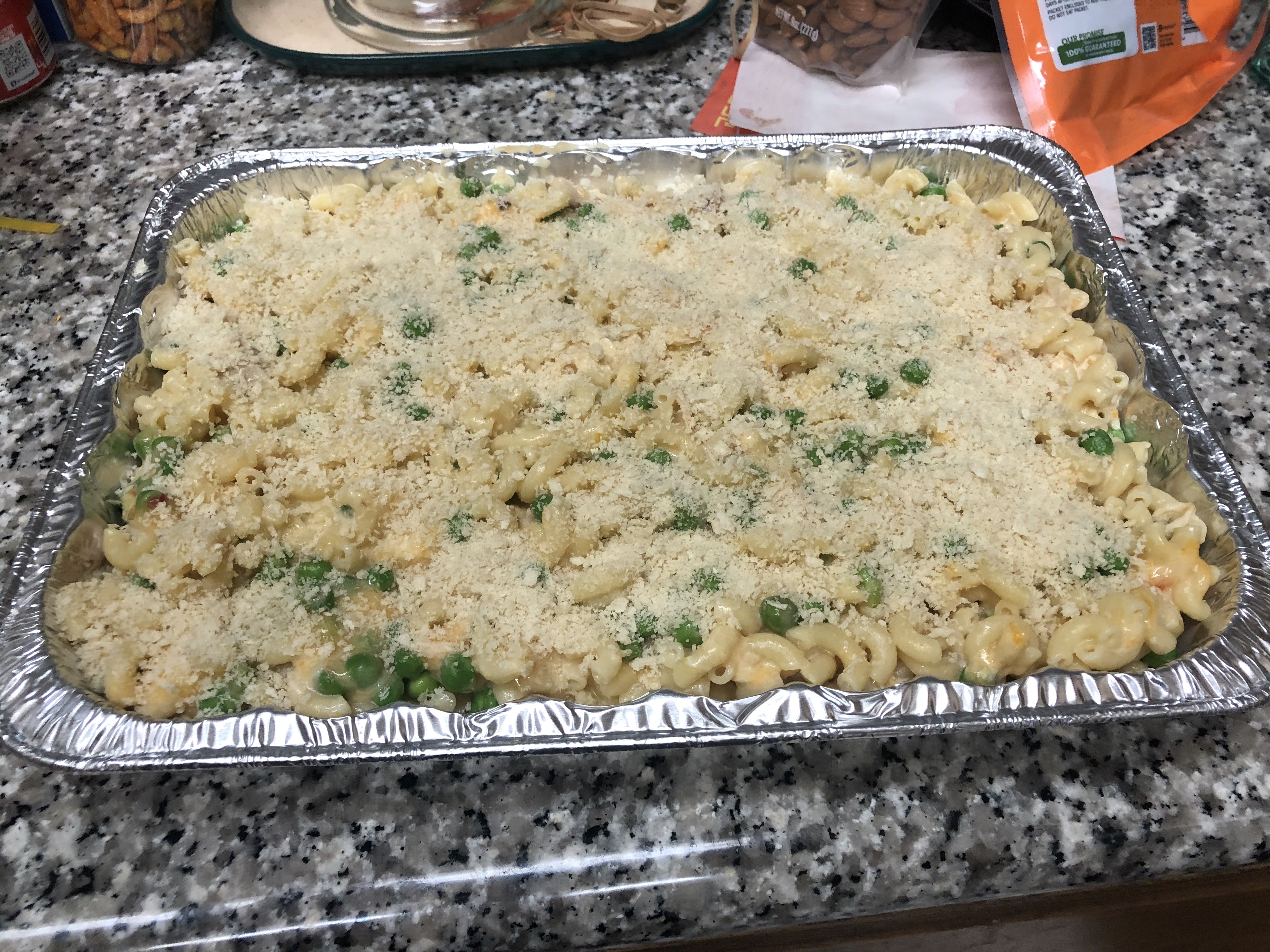 December 18, 2019The Christmas season has arrived and that means pot luck lunch/dinners. This year I made a macaroni/cheese with chicken and green peas. This is an amalgam of several mac/cheese recipes. This should be enough to feed about 8 people.