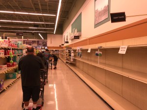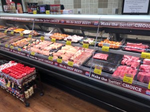 Meat, chicken and fish are fully stocked, as are produce. Perhaps people can’t figure out how to horde ground beef or fresh green beans.