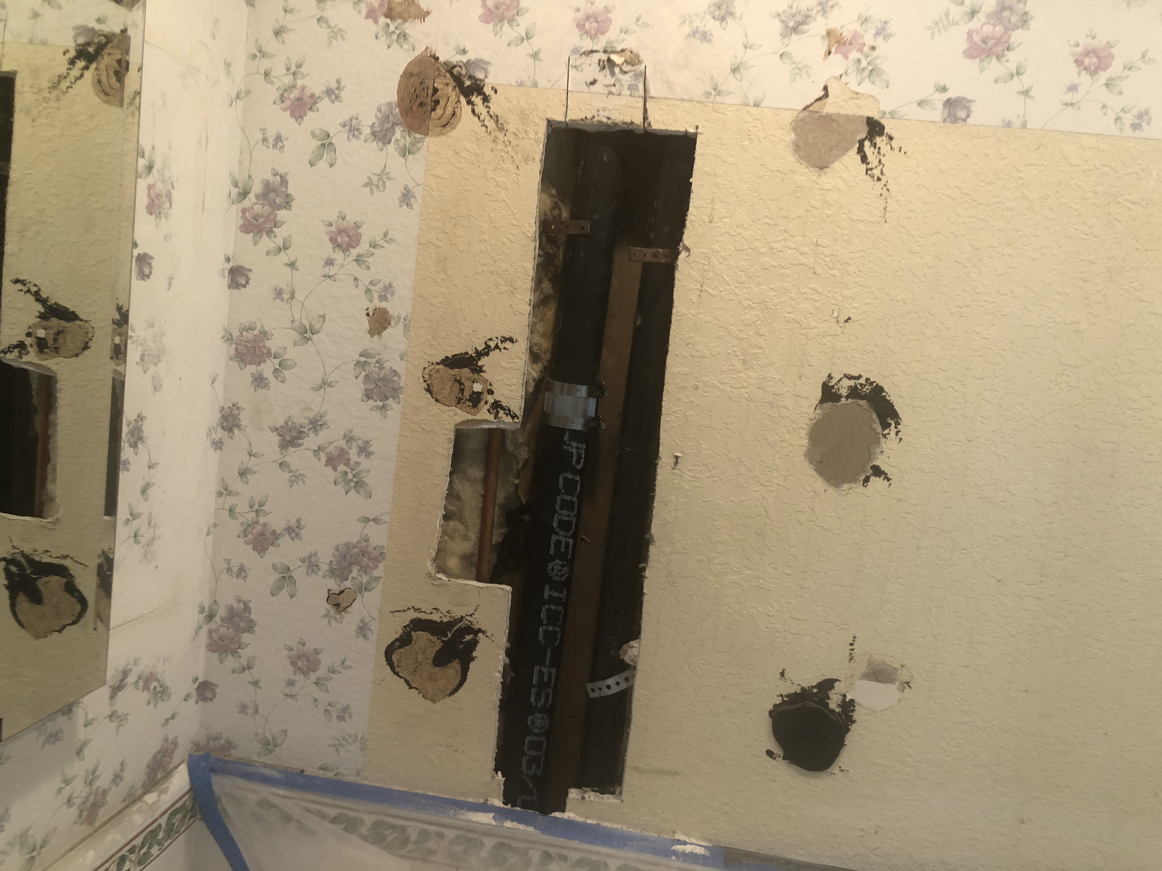Plumbers were here today to work on the drain. The plan was to replace the main drain pipe from the unit 301 on the third floor down to our unit 101.