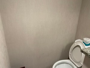 So the first picture is of the large wall. What’s missing? Towel racks. No towel racks anywhere in bathroom. Who doesn’t put towel racks in bathrooms? Maybe they want us to throw the towels on the floor.