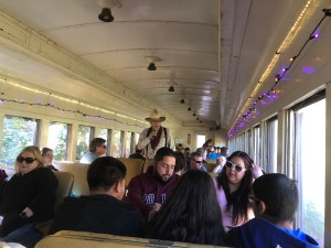 Once everyone was on board, the train sets off rumbling through the countryside with a toot,toot,toot every time we came to a RR crossing. Halfway to our destination somewhere in the middle of nowhere stopped to allow a few train robbers to board and harass all the passengers with a “hands up!!”.