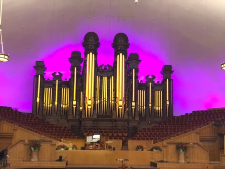 We arrived yesterday in the SLC area. Today we had breakfast and then took the UTA train to Temple Square. Our tour guide was Bob Lunt who is Laura Lunt’s Dad (Laura is Neil’s wife). Temple Square is the geographic center of the city of Salt Lake City. Click
