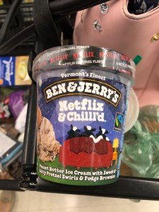 So we headed down to the freezer section, first to get resupplied with ice cream. We have our priorities. We were checking out the Ben & Jerry’s section and lo and behold they had pints of “Netflix and Chill’d”. I figured I had died and gone to heaven. Here’s the Wikipedia entry. Click here for the link to the Ben & Jerry’s site.