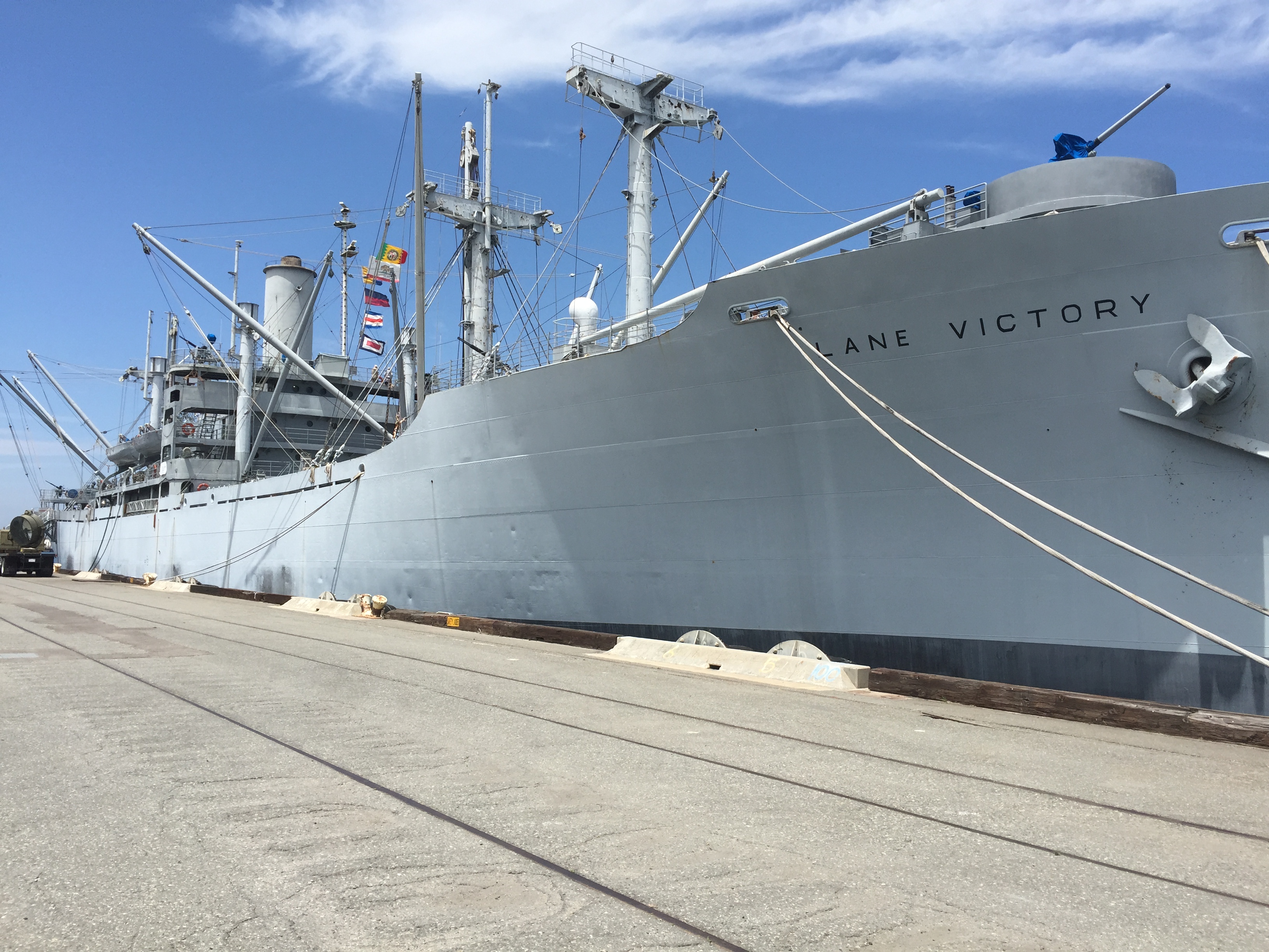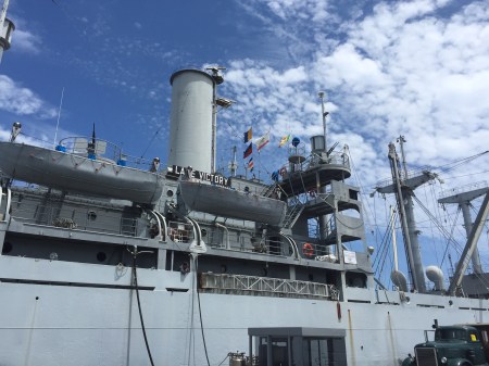 Paula and I were feeling kind of bored this morning. We were all caught up on our errands. Nothing on our OES or Assistance League calendars. And, Mary didn’t have anything on her agenda. Seeing as we didn’t just want to just hang out. We decided to take a ride down to the harbor and take a tour of the SS Lane Victory. The Lane Victory was holding a grand celebration of the 70th anniversary of her launch at the end of WWII
