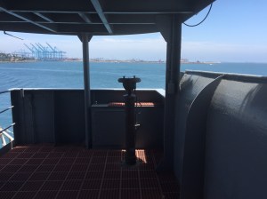 We started with a tour of crew quarters, then officers’ quarters then up to the bridge. There were a few modern devices add to the bridge (eg. ship-to-shore radio). Here’s the views from the bridge.