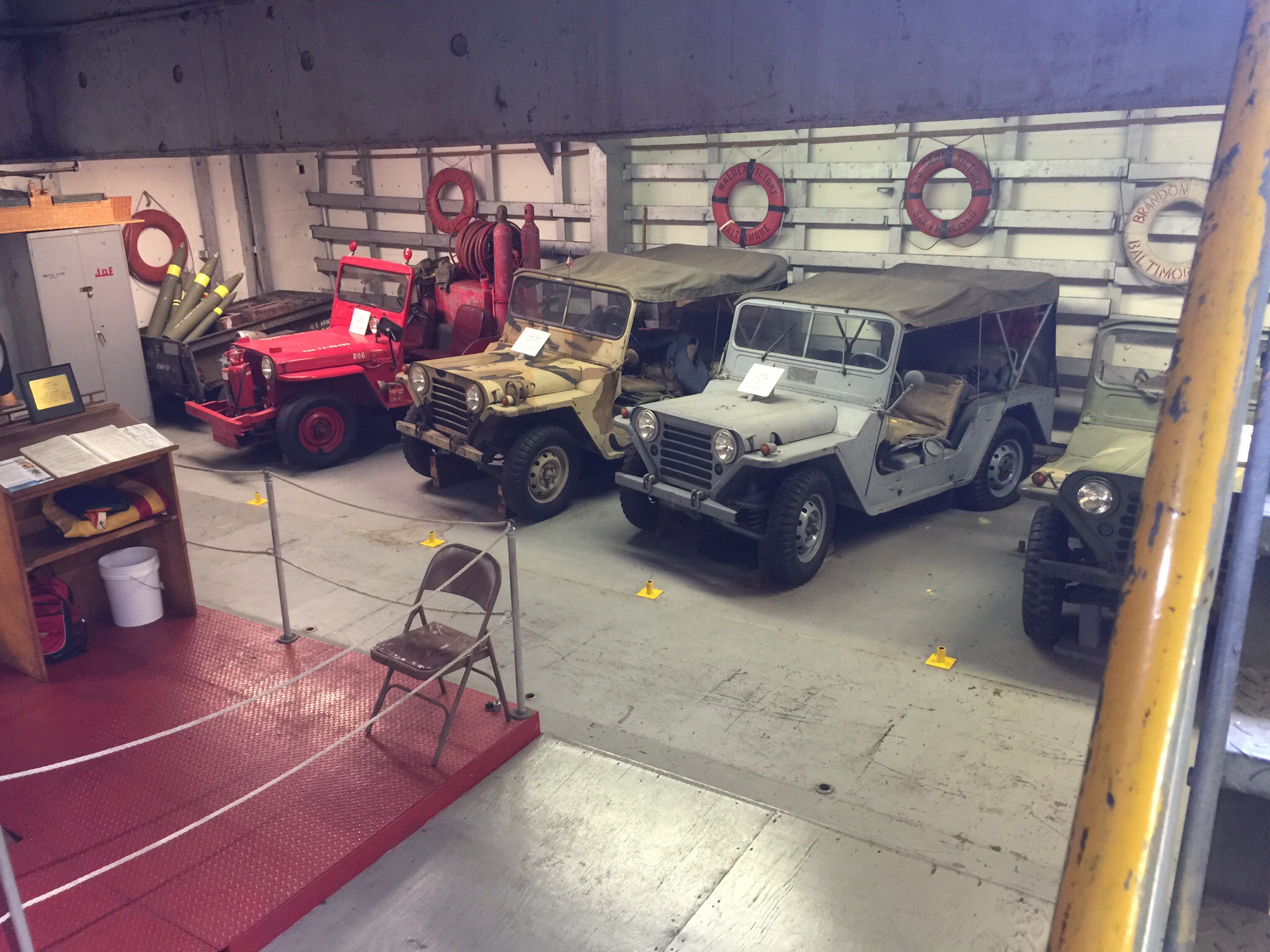 Then we headed down to the number 2 hold. The hold is set up as a mini-museum with four Jeeps, a steam engine, a torpedo and a mine plus a ton of other memorabilia.